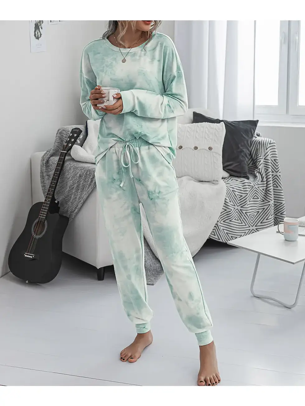 KAYAN.L | Green Tie Dye Long Sleeves T-Shirt and Joggers Sets